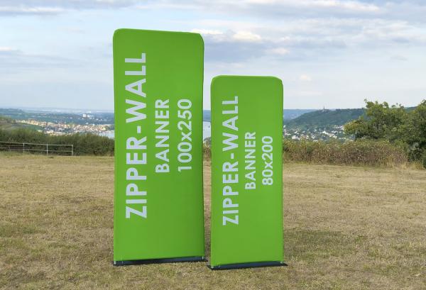 Unsere ZIPPER-Wall Banner in der großen Variante sorgen für ideale Aufmerksamkeit und sind einfach in der Montage und dem Transport zu handhaben. Egal ob für Ihren Messeauftritt oder andere Veranstaltungen. Durch den beidseitigen Druck und die große Fläche des Messeaufstellers haben Sie jede Menge Platz für Ihre Werbebotschaft. Das stilvolle Erscheinungsbild des ZIPPER-Wall Banners mit dem abgerundeten Design lässt sich zudem erweitern mit einer LED- oder Halogen-Beleuchtung. Sie erhalten das Werbesystem in verschiedenen Größen von 60 x 150 cm bis hin zu 100 x 300 cm. Der Kundenstopper wird inklusive einer verstärkten Tasche mit Innenfutter ausgeliefert, für optimalen Schutz und Komfort beim Transport.