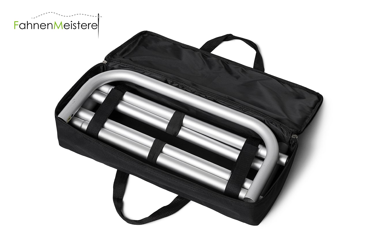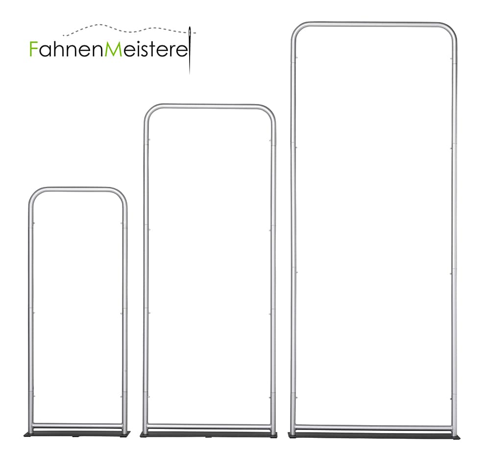 Das gelieferte System besteht aus robusten, eloxierten Aluminiumstangen, die mittels Sicherheitsklickverbindern zur ZIPPER-Wall-Banner verbunden werden. Alle Einzelteile sind farblich und nummerisch markiert, was den schnellen Aufbau ermöglicht. Die schwarze Stahlplatte gewährleistet einen stabilen Stand des Systems im Innenbereich.